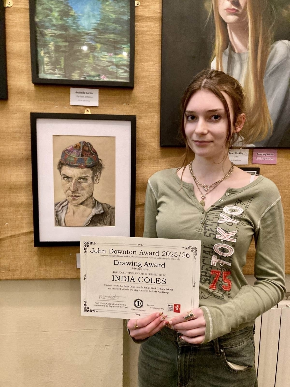 India’s work explores the experiences of refugees, often facing unimaginable uncertainty and hardship. The judges particularly praised the eyes in her portrait, noting how they immediately draw the viewer in and communicate profound emotion. Remarkably, this marks the third consecutive year that a St Simon Stock student has won Best Drawing.