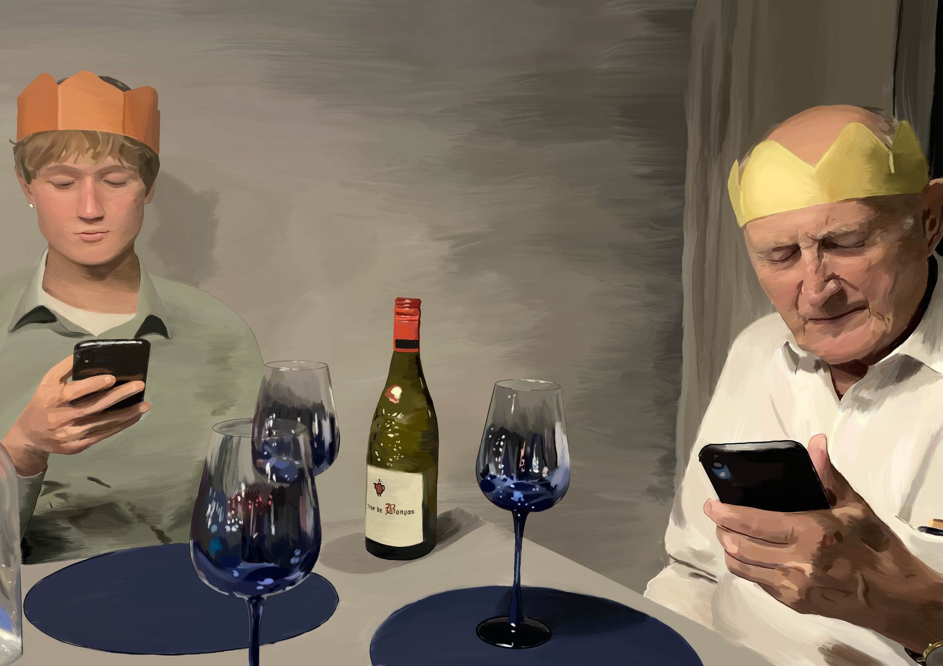 Joe’s work reflects on the modern tension between digital life and real-world interaction. Through his piece, he highlights the subtle yet significant ways that “phone life” can overshadow “real life,” prompting viewers to reflect on their own habits.
